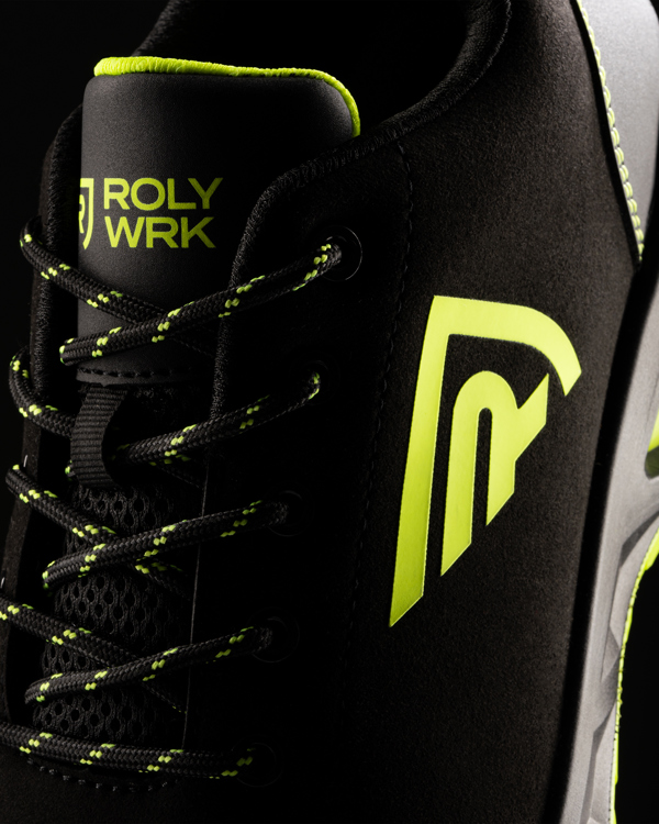 Sapatos de trabalho de estilo desportivo, fabricados em microfibra nobuck com reforço na zona do calcanhar.
